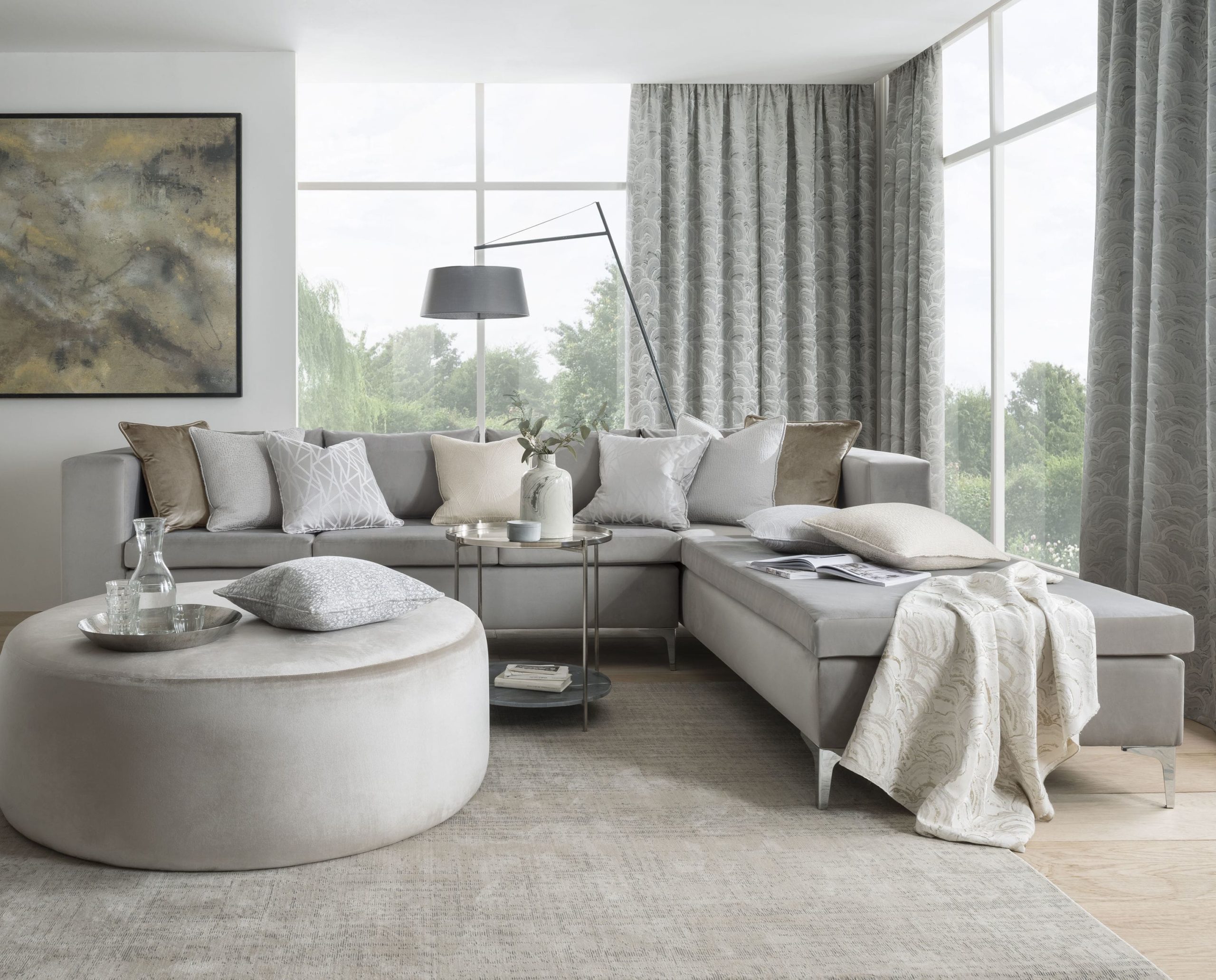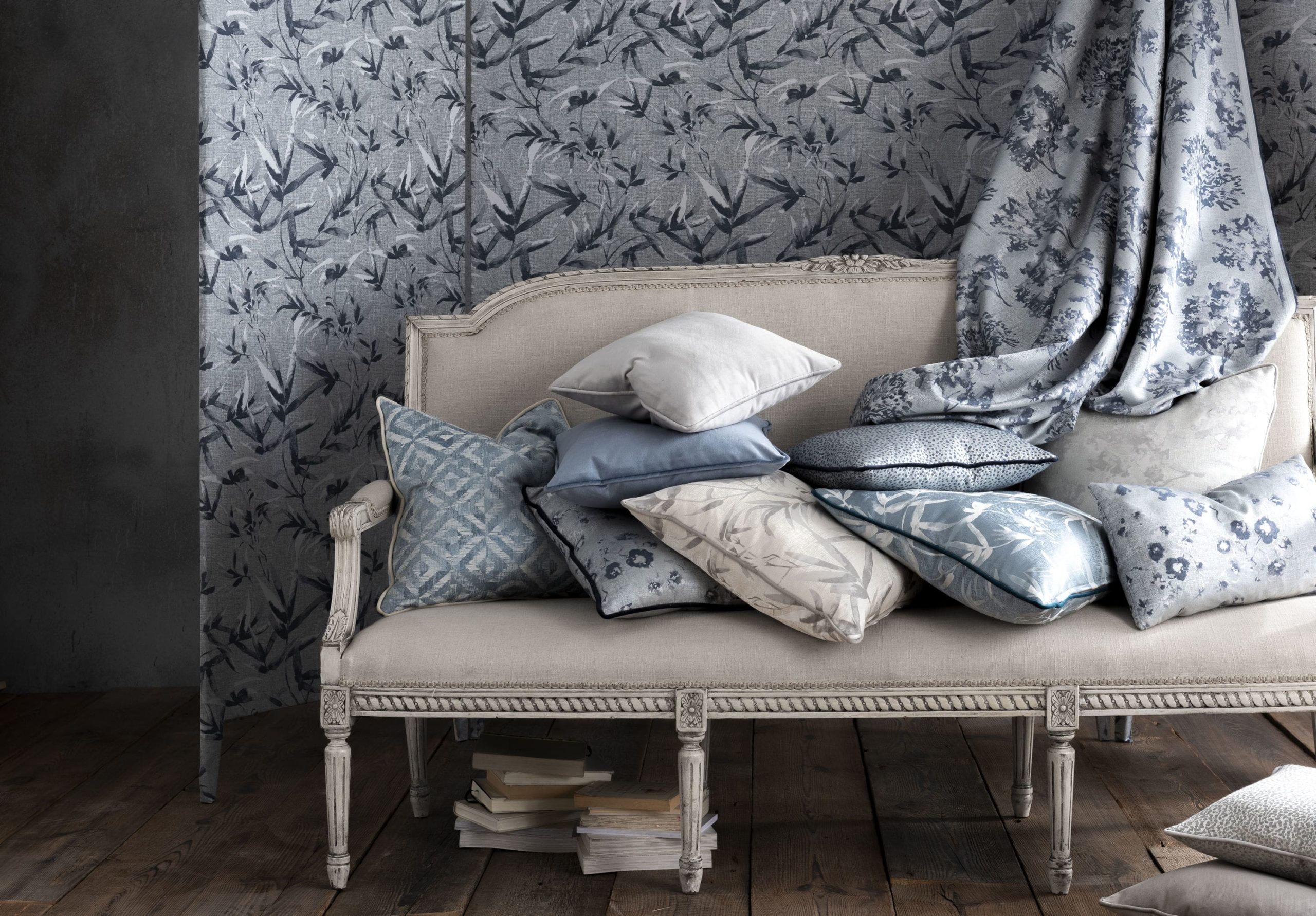 Feine Stoffe für Wohnaccessoires, Vorhänge und Kissen. Farben, Strukturen und Designs, die Atmosphäre schaffen und Räume stilvoll abrunden.
